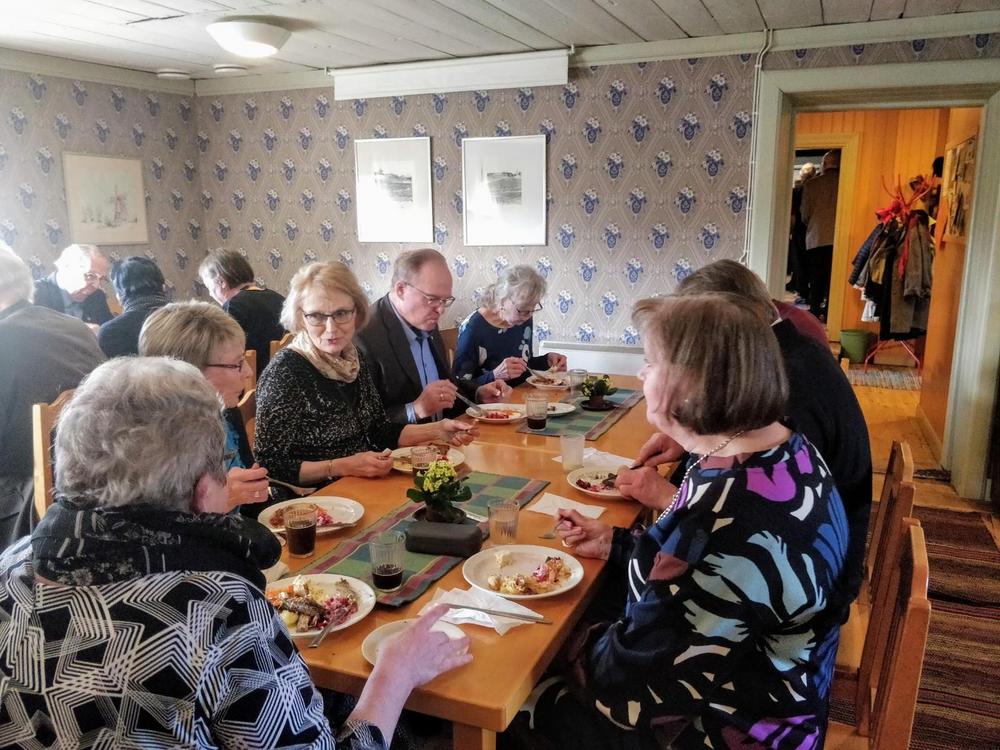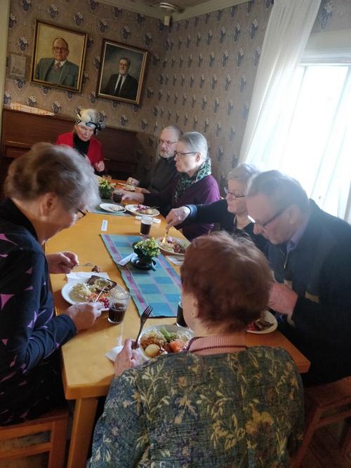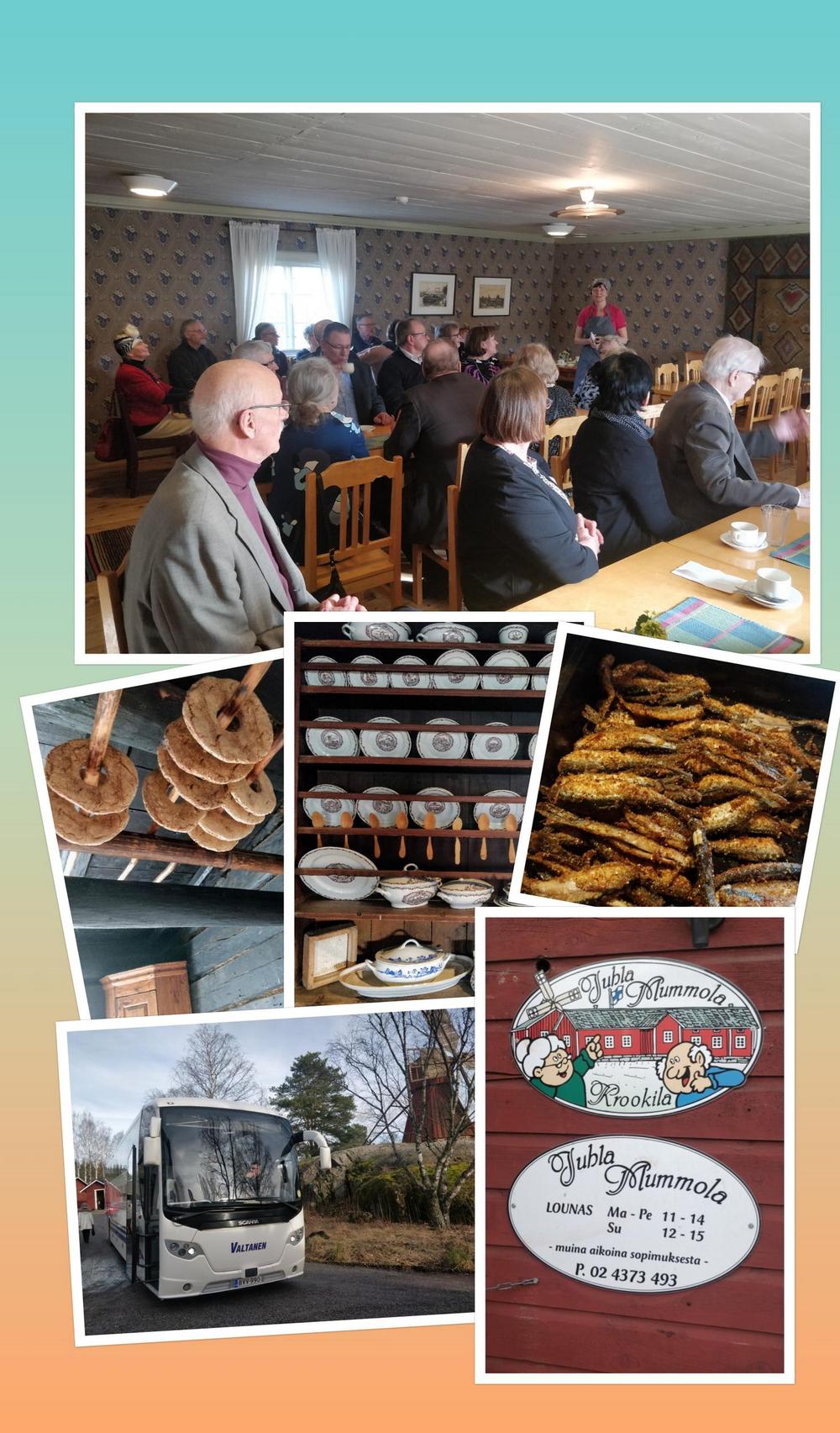 18.2. Lounasretki idylliseen Raison Krookilan JuhlaMummolaan. Yläneläislähtöinen Jaana Kaarto kertoi meille Krookilan vaiheista. Ensimmäiset merkinnät löytyvät jo vuodelta 1490. Nyt Juhlamummola toimii idyllisenä lounas ja juhlapaikkana. Saimme herkutella paistetuilla muikuilla!