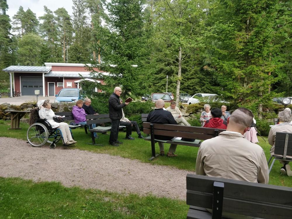 22.7. Kesäillan hartaus Karinaisten kirkonmäellä. Illan ohjelmasta vastasivat rovasti/seniorijäsen Jouko Kyyrö sekä kanttori Eero Hoikkala. Päivän mittaan ropsahdelleet sadekuurot eivät pelästyttäneet yli 40 osallistujaa vaan Auranmaan senioreiden tarjoamat kahvitkin saatiin nauttia kirkon pihapiirissä.