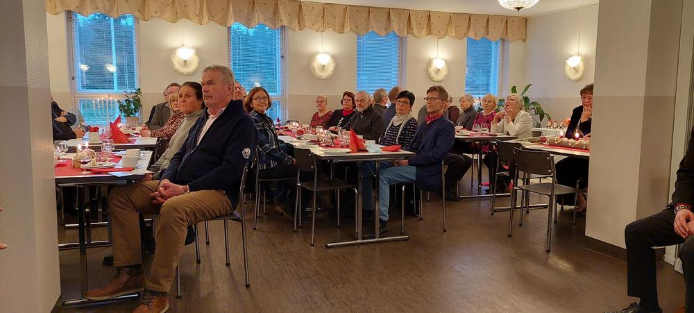 Ti 14.12. Vietimme joulujuhlaa Kaidanojan Kartanossa jouluisen herkkupöydän antimista sekä ohjelmasta nauttien. Terveisiä piiritasolta toi puheenjohtaja Arja Lystilä. Hän myös jakoi Kansallisen senioriliiton 50 -v juhlamitalit yhdistyksemme ansioituneille senioreille.