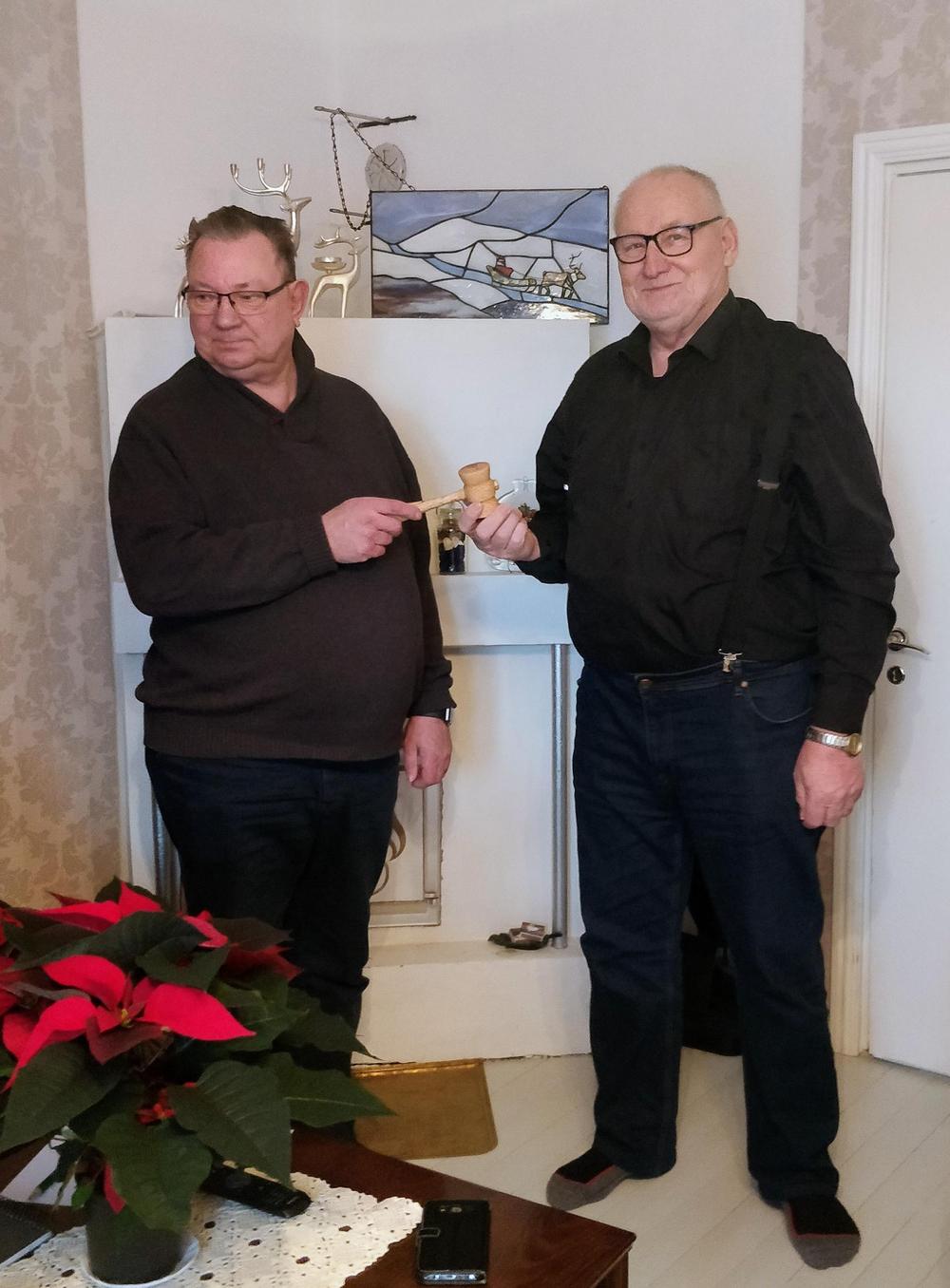 Ti 7.12. Väistyvä johtukunta kokoontui Helenan ja Matin luokse lämminhenkiseen vuoden viimeiseen kokoukseen. Puheenjohtajan nuija ja sihteerin muistitikku siirtyivät uusiin osoitteisiin.
