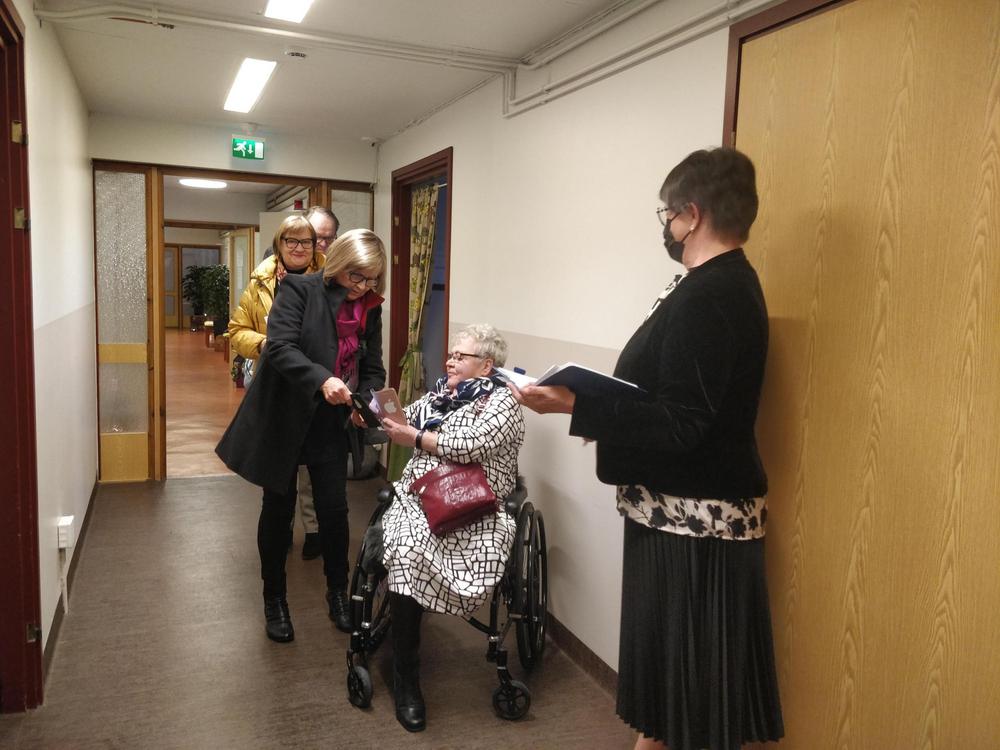 To 18.11. Varsinais-Suomen kansallisen senioripiirin syyskokouksessa Piikkiössä Kavalton tilalla Auranmaan senioreiden edustajat Helena, Matti ja Tapani. (kuva Jorma Rinne)