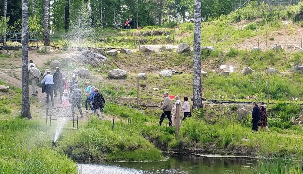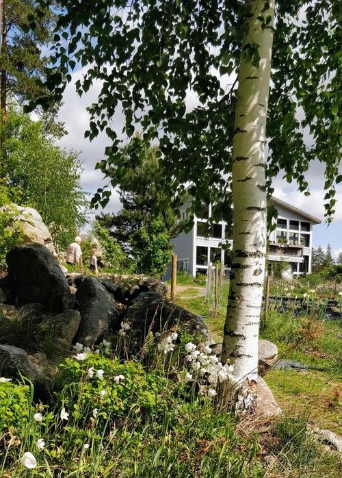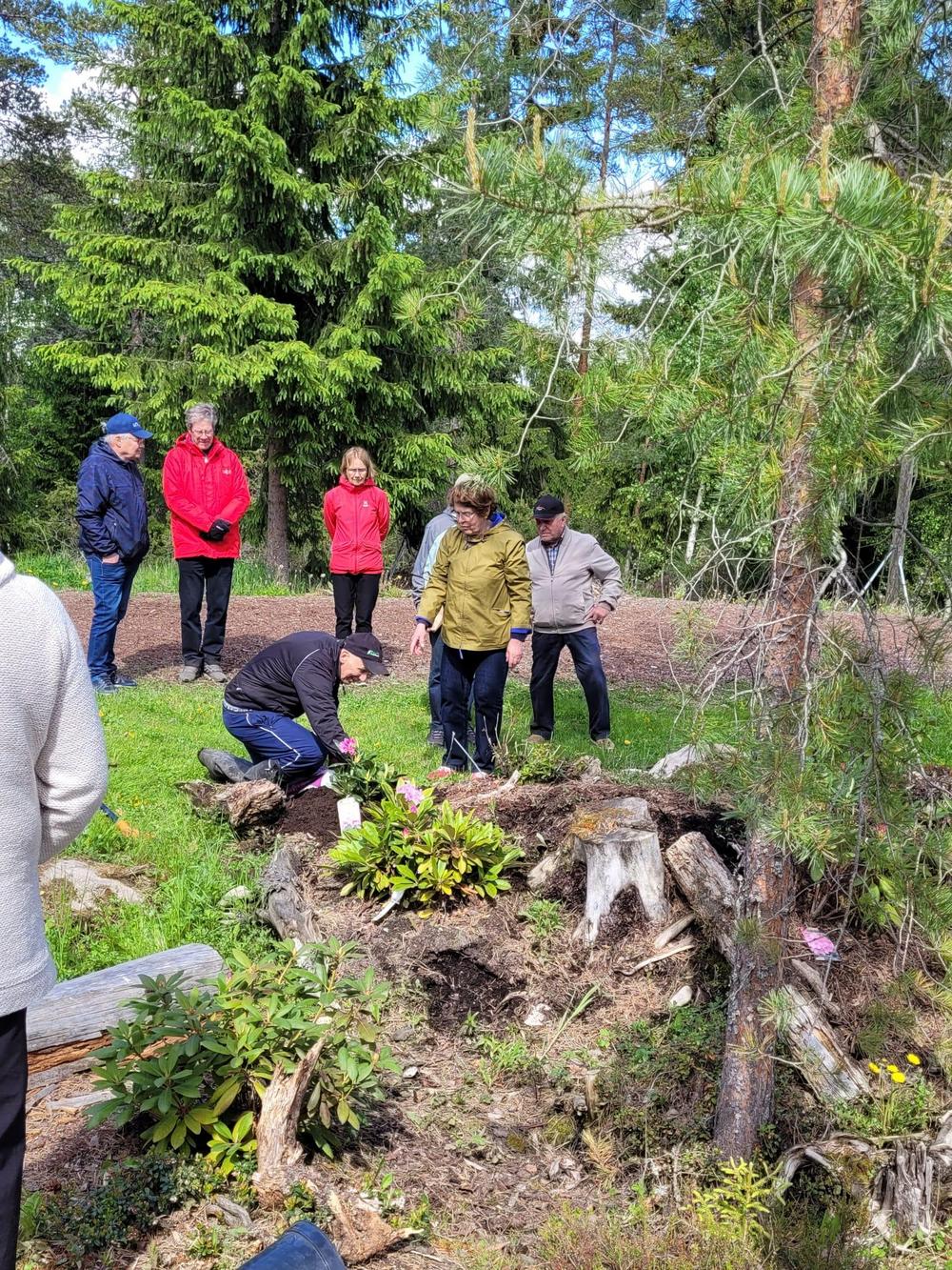 Mairen opastamana vierailimme myös Kyrön alppiruusupuistossa ja veimme uuden alppiruusun pari vuotta sitten istutetun 'Pohjolan tyttären' viereen. Saimme myös hyviä vinkkejä alppiruusujen hoitoon ja kasvatukseen. Paras kukintaloiste on vielä edessä, kunhan ilmat vähän lämpenee ja yli sadan alppiruusun nuput aukeavat.