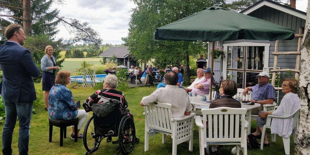 Senioreitten kesäpäivää vietettiin Sinisalojen idyllisessä pihapiirissä savusaunan lämmetessä. Yhdessäoloa, kahvittelua, arvontaa, vilkasta keskustelua ja mielipiteiden vaihtoa. Vieraamme, ensimmäisen kauden kansanedustaja Milla Lahdenperä kertoi kesäkuulumisia sekä uudesta eduskuntatyöstään. Hienoa, kun kaunis heinäkuinen päivä oli innostanut runsalukuisesti senioreita liikkeelle!