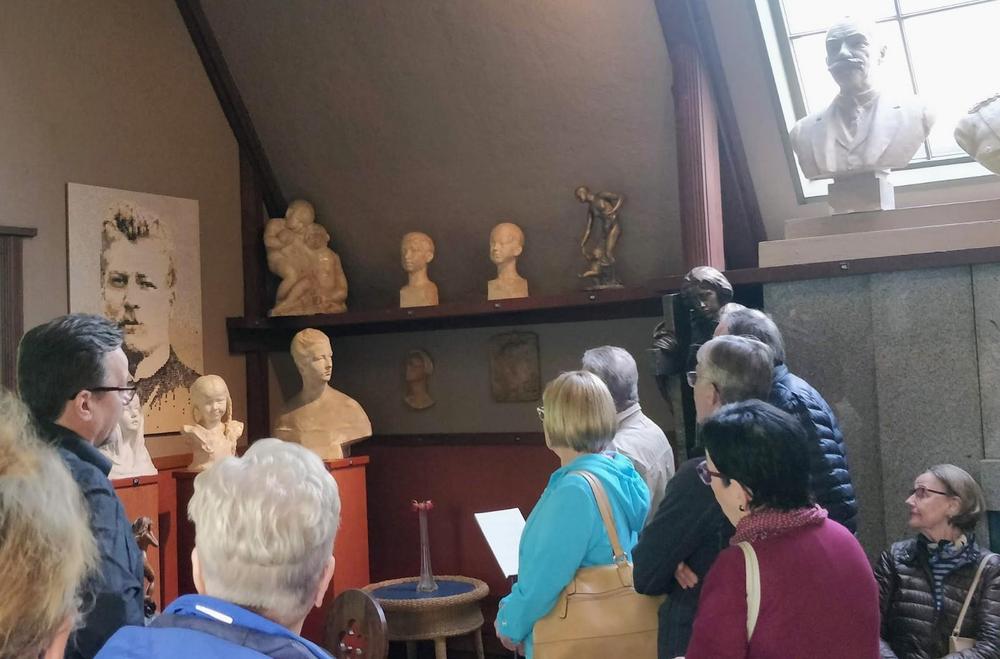 Auranmaan senioreiden kesäretken ensimmäinen kohde oli Visavuori, kuvanveistäjä Emil Wickströmin kerrassaan upea kansallisromanttinen ateljeekoti Valkeakoskella.
