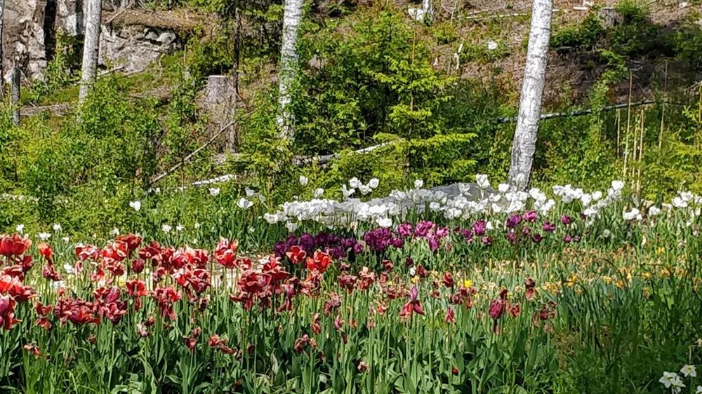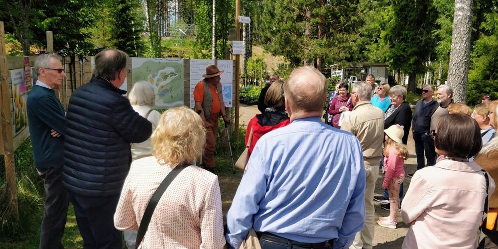 Maittavan lohikeiton jälkeen matkattiin Visavuoresta Urjalan Pölkinvuoren Kasvimaailmaan. Veli-Pekka Weckman kertoi kasvimaailman olevan yli 6 ha:n alue: metsäpuutarha, kukkapuisto, kauppapuutarha, taimisto, kahvila ja laajenevat parkkipaikat. Komein sipulikukka-aika oli tältä vuodelta ohi, mutta katsottavaa riitti!