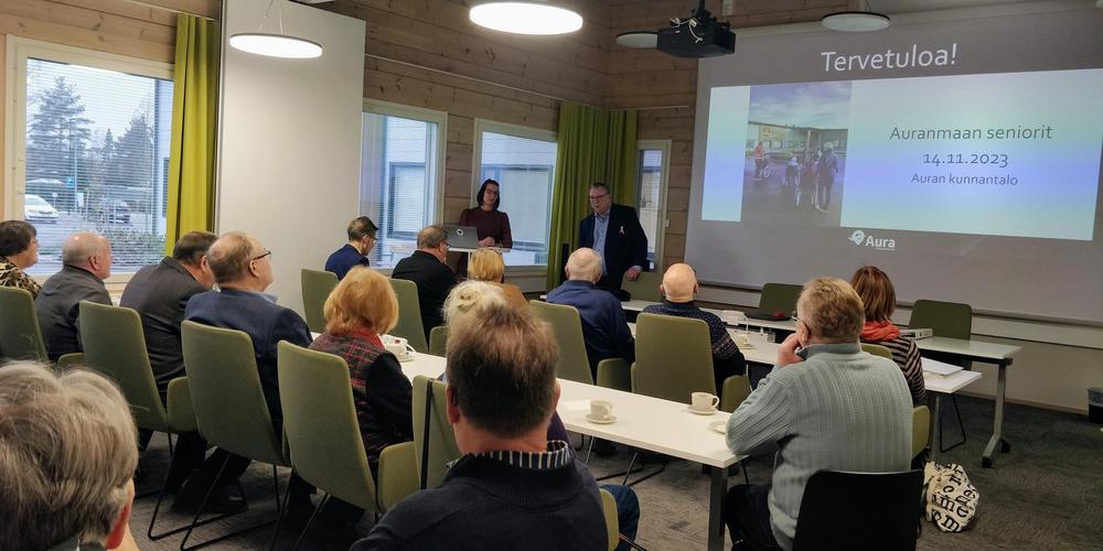 Auran kunnanjohtaja Terhi Källi esitteli aluksi kunnan uuden, ilmastoystävällisen hirrestä rakennetun toimitalon. Siinä on kiinnitetty erityistä huomiota sisäilmaolosuhteisiin ja materiaalit ovat niin akustisesti kuin visuaalisesti aistiystävällisiä. Kuulimme myös elinvoimiaisen kunnan tulevista suunnitelmista. Esittelyn jälkeen pidimme SYYSKOKOUKSEN.