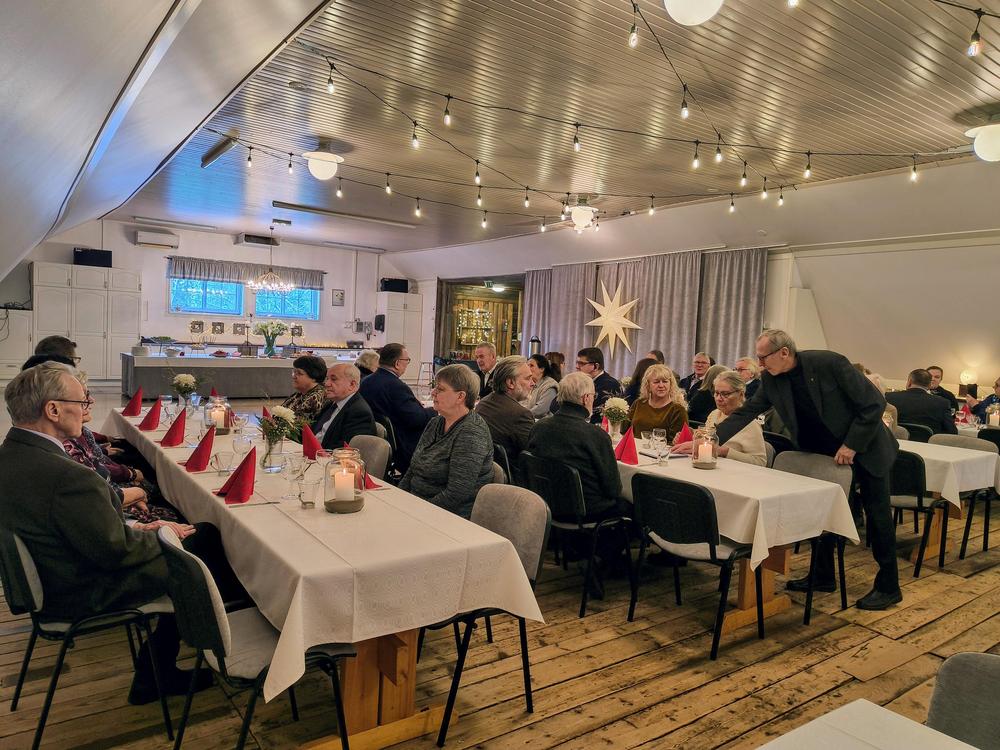Vietettiin perinteistä joulujuhlaa Kavalton tilalla Piikkiössä. Yhdistys tarjosi senioreille kyydin Valtasen Liikenteen bussilla ja mukavasti väkeä olkikin lähtenyt mukaan.