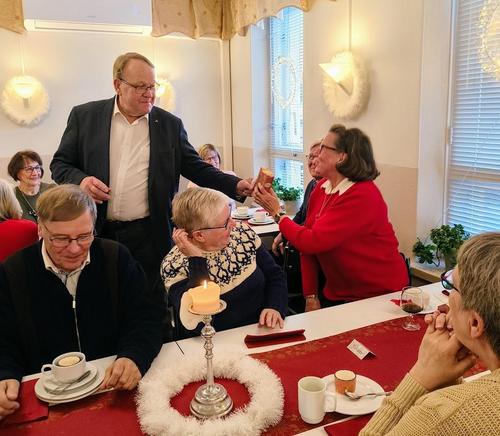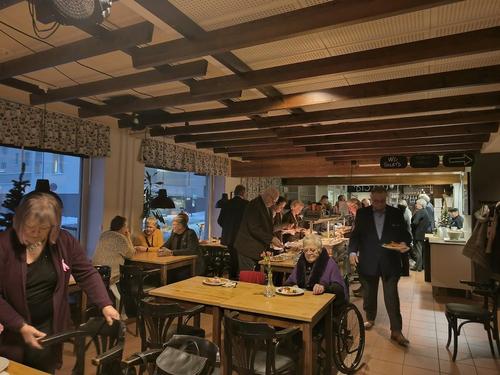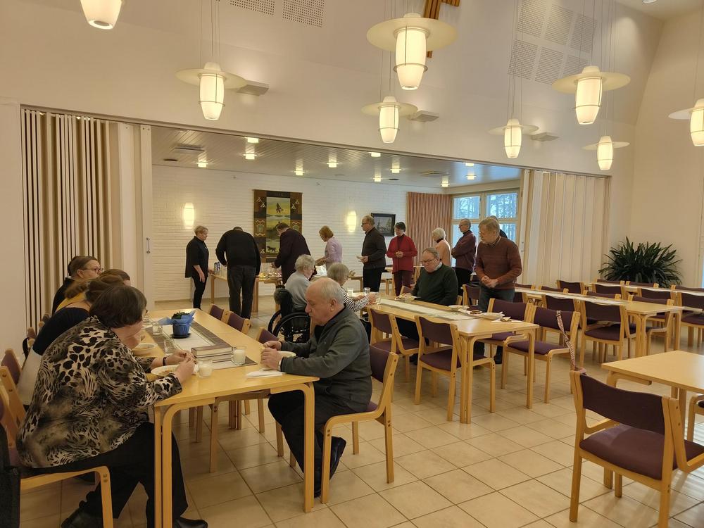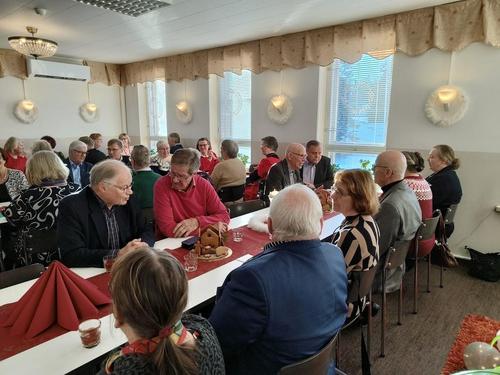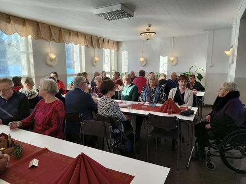 Ti 10.12. Jouluruokailu Kaidanojan kartanossa päätti toimintavuoden 2024. Lähes 50 senioria oli kokoontunut kauniina talvipäivänä yhteiseen hetkeen. Hyvä ruoka, koskettavat puheet, esitykset ja yhteislaulu loivat lämpimän yhdessäolon tunnelman. Ja tietysti iltapäivän päätteeksi arvottiin joulukinkku.
