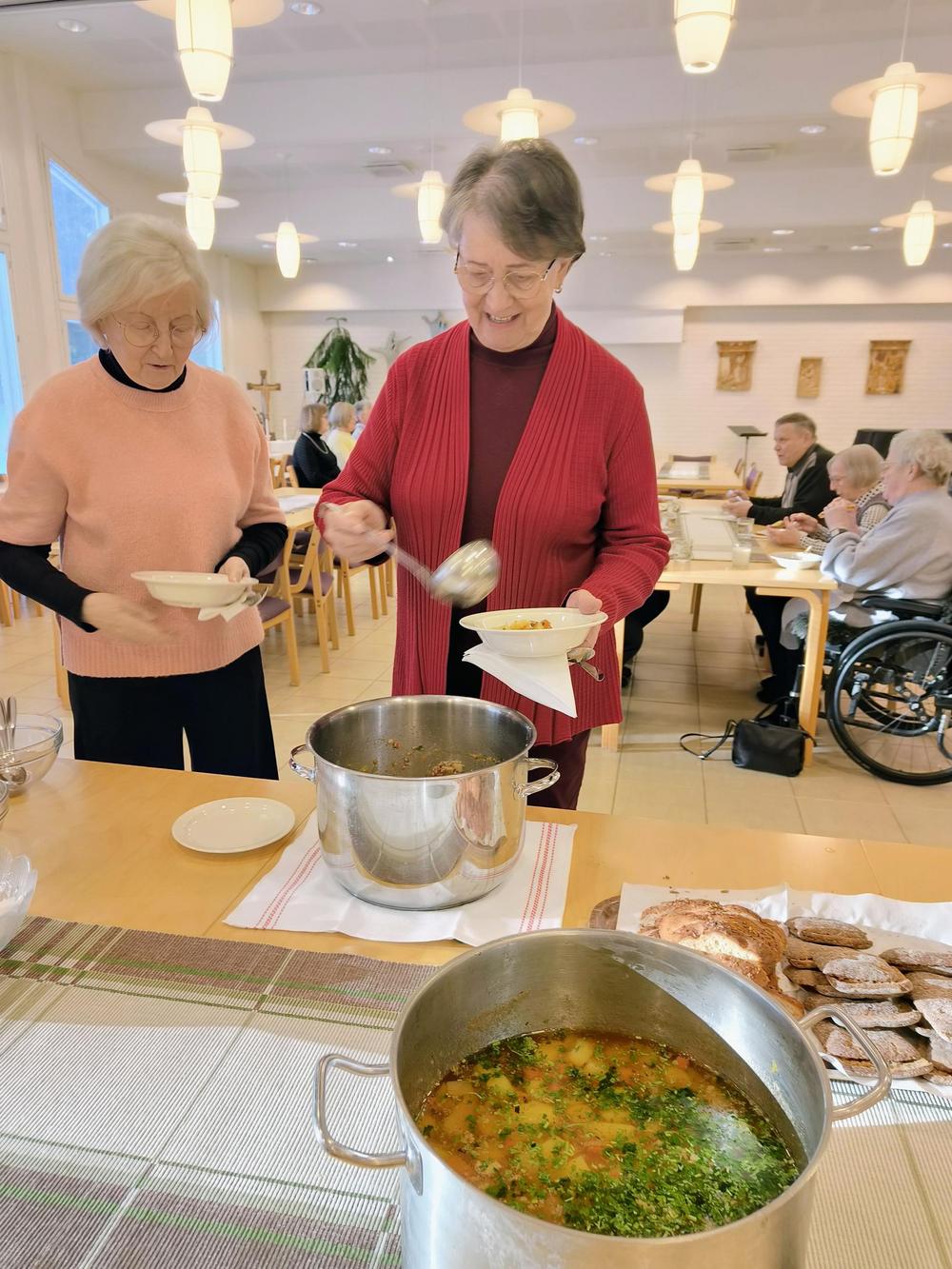 Nautimme Juhlapalvelu Tanja Leinon maukkaan keittolounaan Kosken srk-talolla. Maire esitti meille runon, jonka tekoäly ChatGPT oli tilaisuuttamme varten runoillut: