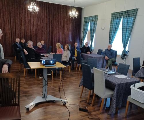 Seniorien toimintavuosi aloitettiin Kyrön Seudun POP-pankin kerhohuoneella perehtymällä tärkeisiin digi-, netti- ja tietokoneasioihin, huijaus ja kelmijuttuja unohtamatta . Annele Silvennoinen, Varsinais-Suomen senioripiirin sihteeri ja kouluttaja opasti meitä niin, että vireää keskustelua ja ajatusvaihtoa syntyi mukavasti. Taisi olla tämän talven lumimyrskyisin päivä, mikä varmasti vähän verotti kuulijoita.