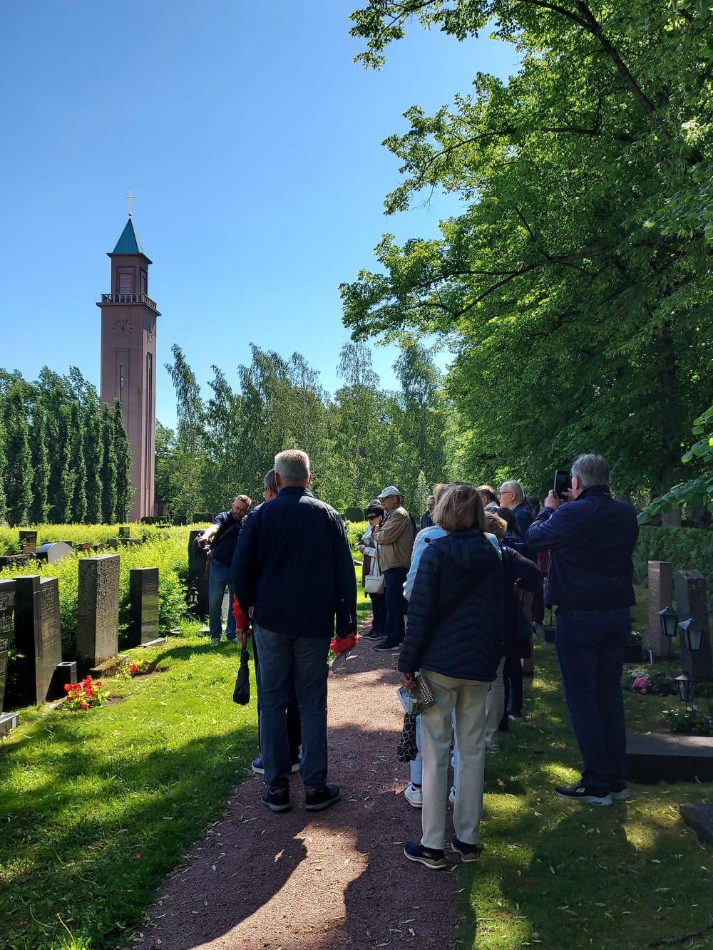 Ke 12.6. lähdimme kesäretkelle Helsinkiin. Aamukahvit juotiin Ykköspesällä ja auringon paistaessa tutustuimme oppaan, Pekka Lehtiö, johdolla Hietaniemen hautausmaahan. Näimme ja kuulimme tarinoita Suomi 100-kierroksella merkkihenkilöiden viimeisistä leposijoista. Noin 1.5 h kierroksen jälkeen lounas odotti Helsingin pääpostin tiloissa ja sitten siirryttiin stadionille uusittuun Urheilumuseo Tahtoon. Täälläkin kuulimme ensin opastusta, jonka jälkeen tutustuimme monipuoliseen näyttelyyn ja onnistuipa hieno siellä fanitapaaminenkin. Paluumatkalla ihmeteltiin vielä Kasvihuoneilmiötä ja sen mahtavia munkkirinkilöitä.