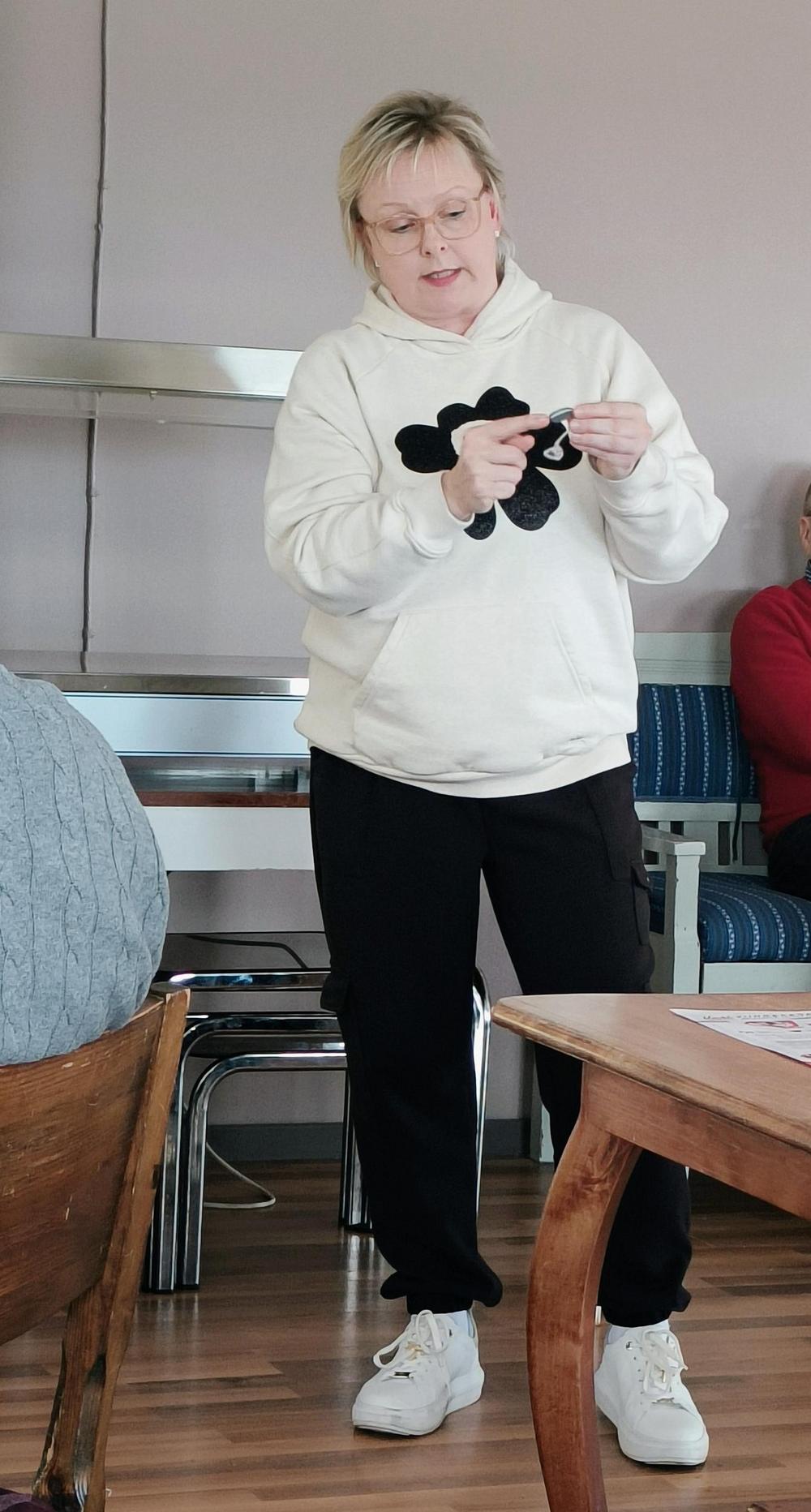 To 25.4. Tiskitontä torstaita vietimme tällä kertaa vasta-avatussa Kulkurin Kievarissa Mellilässä. Lounaan jälkeen idearikas Jaana Pirttisalo kertoi Kievarin monipuolisesta viihdetoiminnasta sekä alkavasta pitopalvelusta ja gluteenittomien tuotteiden leipomostaan. Kokousesitelmän pitäjäksi saimme Loimaan aluesairaalasta audionomi Sari Karvisen. Hän kertoi, miten kuulon heikkeneminen vaikuttaa iän myötä arkeen, miten toimia, kun telkkarin ääninappulat ei enää riitä. Hän esitteli myös erilaisia kuulokojeita sekä niiden huoltotoimenpiteitä. Meitä oli nelisenkymmentä senioria ja saimme aikaan vilkkaan keskustelun. Tilaisuus päättyi vastaleivottuihin munkkikahveihin ja Sarin kukitukseen.