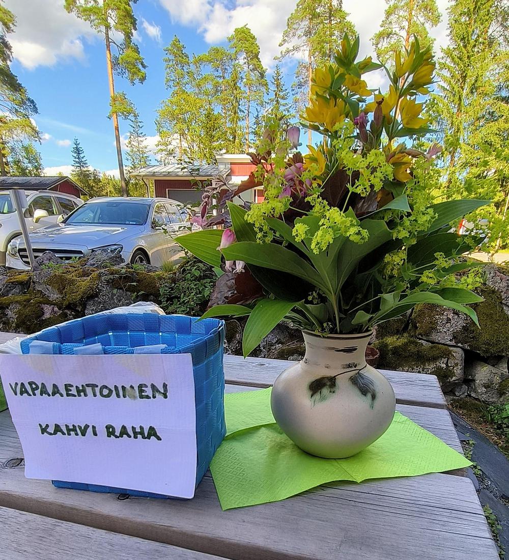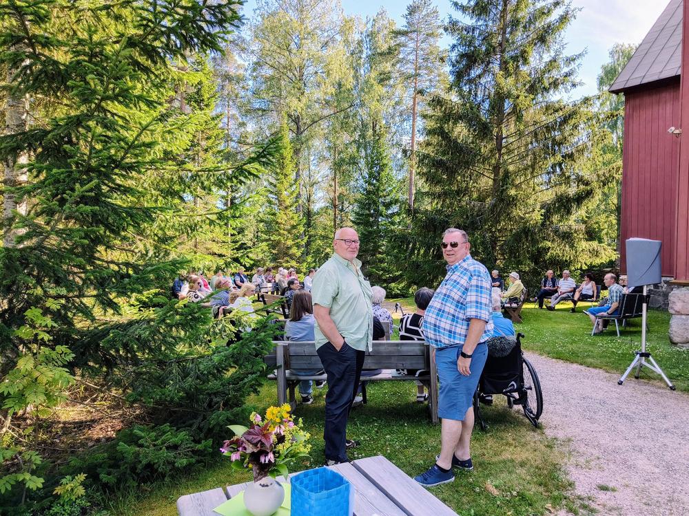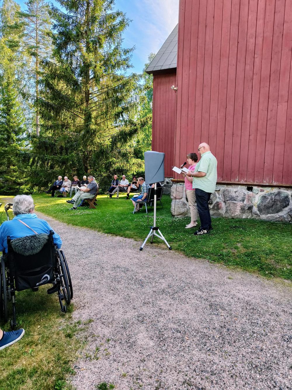 Ke 10.7. kaunis kesäilta oli houkutellut lähes 60 kuulijaa Karinaisten kirkonmäelle perinteiseen kesäillan hartaushetkeen. Auranmaan seniorit hoiti vuorollaan kahvituksen.
