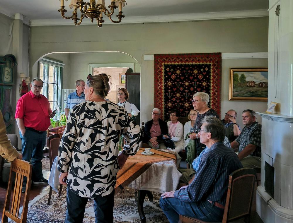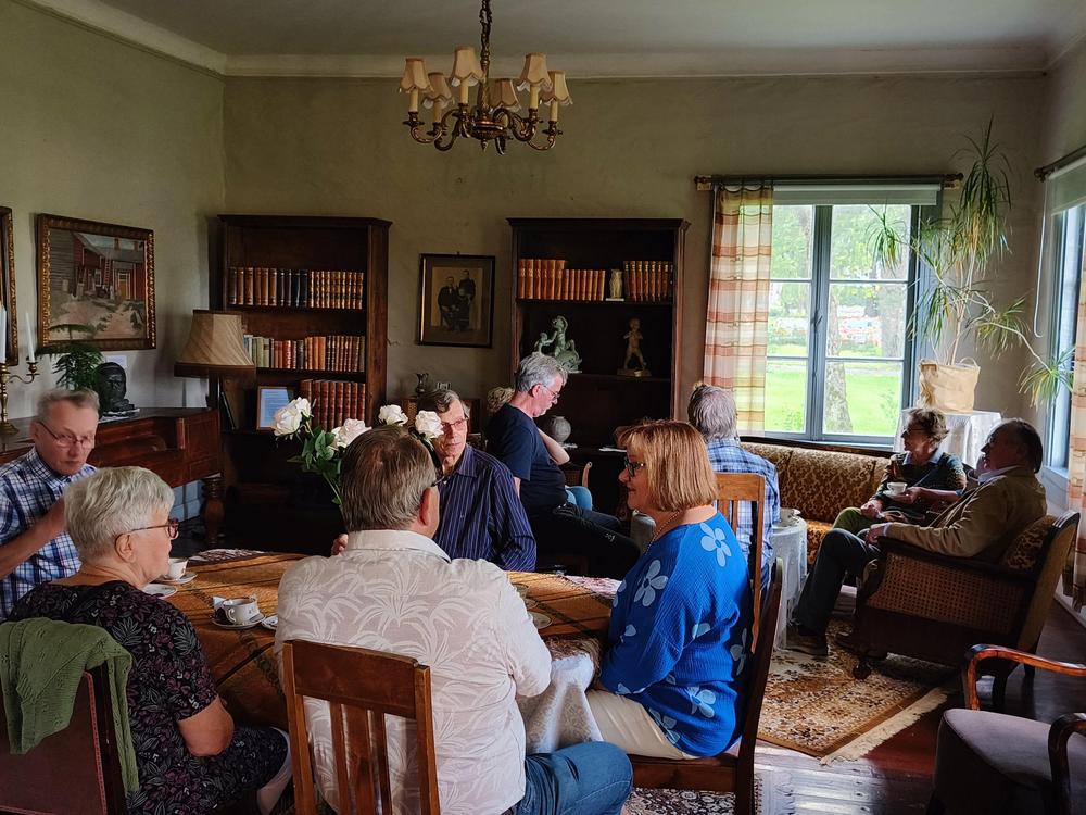 Ti 13.8. Aurinkoisena elokuun tiistaina saimme tutustua Pöytyän Museopappilaan. Makoisan marjapiiraan ja kahvittelun jälkeen Anu-Riikka Terho kertoi meille pappilan elämästä, persoonallisista kirkkoherroista ja talon vaiheista. Voi vain kuvitella elämää upeassa puutarhassa vuosien mittaan. Kiitos Pöytyän Kotiseutuyhdistykselle ja Anu-Riikalle, valtava työ on tehty, että saamme nauttia museopappilasta tänä päivänä!