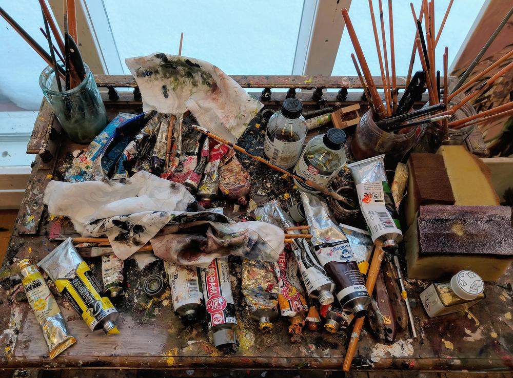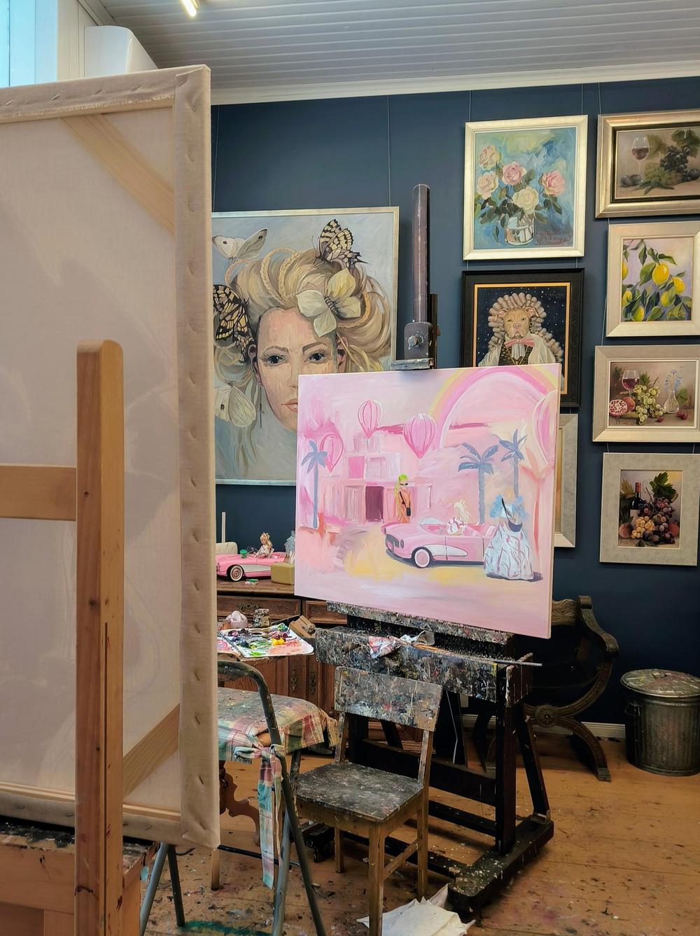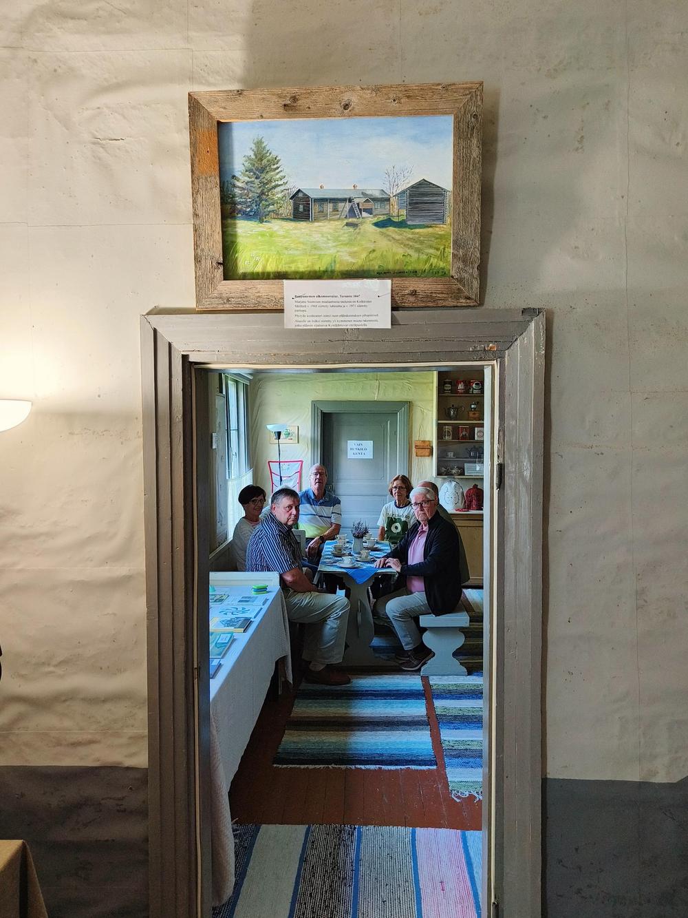 Kosken keskustasta siirryimme Johanna Oraksen ateljeekotiin, missä meidät otettiin lämpimästi vastaan. Reijo Oras muisteli ensin, miten he aikoinaan löysivät vanhan koulun ja kotiutuivat Koskelle. Johanna kertoi opinnoistaan ja maalaustekniikoista. Esittelyn jälkeen saimme tutustua heidän upeaan kotiinsa. Kahvihetki pitkän pöydän äärellä kruunasi vierailun. Sitten olikin aika siirtyä vasta uusittuihin ateljeetiloihin ja nähdä, missä taika tapahtuu. Taisipa sieltä tulla tuliaisiakin mukaan!